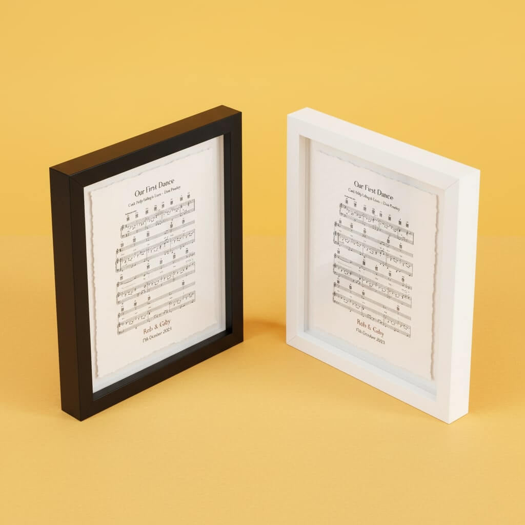 Choose a frame and have it professionally framed in the UK in a bespoke box frame including float mounting the sheet music. The frame is specially designed with white spacer to add depth to the artwork and the float mounting is perfect for displaying the edges of a print. The frame is made of solid wood sustainably sourced and FSC® certified.